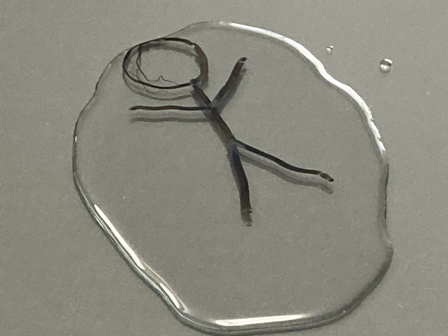 - Use the pipet to drip water onto the plate over your figure (or gently pour the water). The water should lift the solid pigments up off the plate, animating your figure.