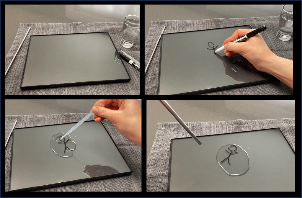 - Use the dry erase marker to draw a simple figure on the glass plate